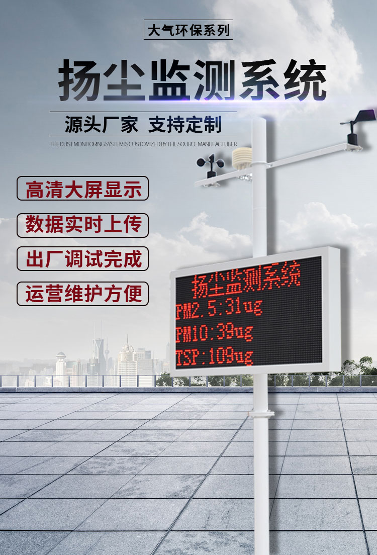 【产品简介】我公司为改善空气质量利用无线传感器技术和激光粉尘测试设备,自主研发的扬尘检测仪,除了可以实现扬尘监控以外,还可以监测PM2.5、PM10,PM1.0、TSP、噪声、环境温度,环境湿···