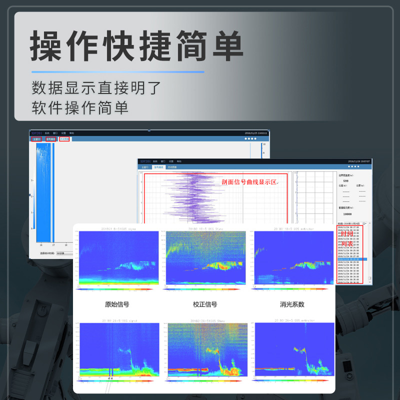 1.采用米散射激光技术,信号发射功率强大、稳定,测量距离远。
